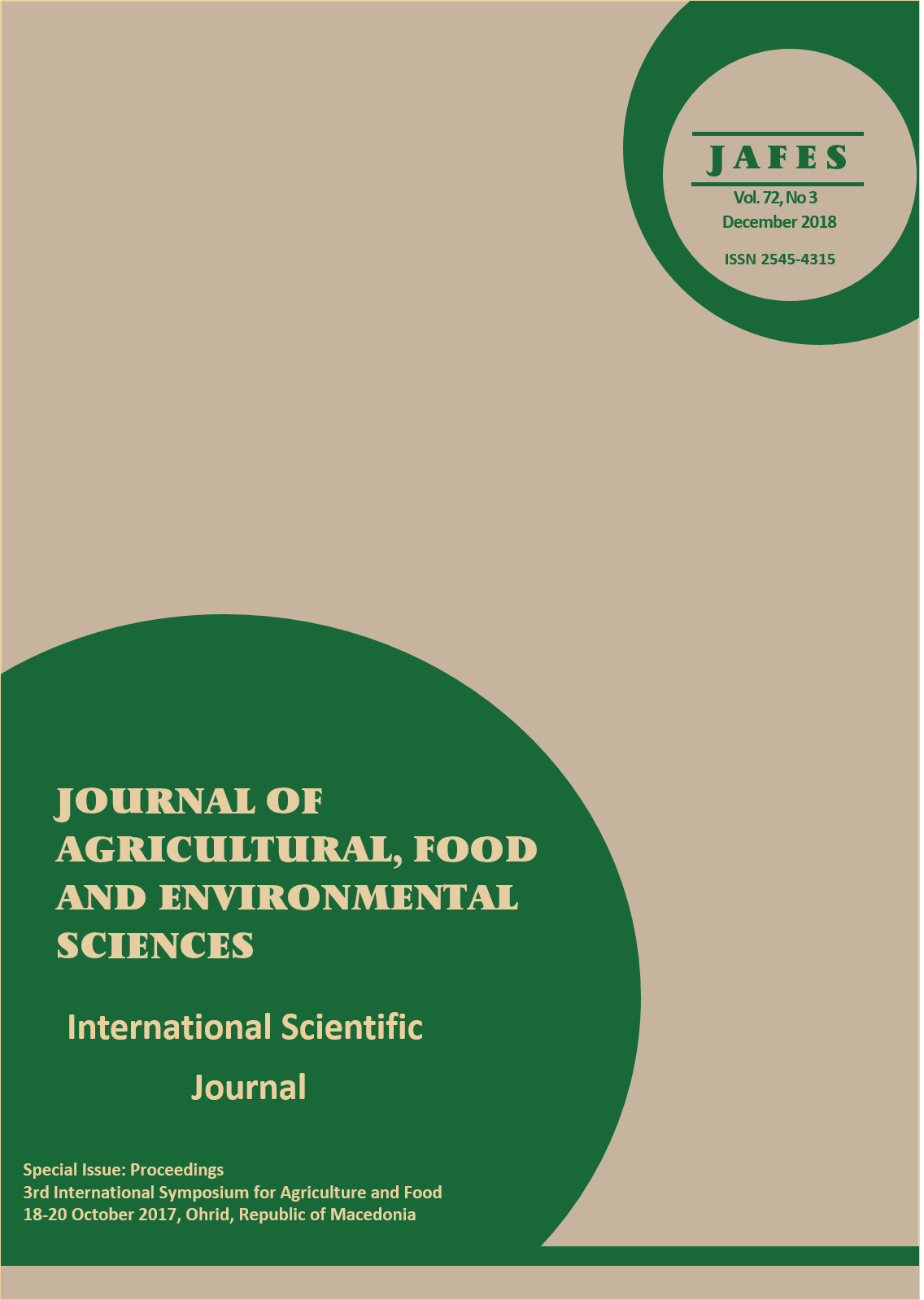 Том. 72 Бр. 3 (2018)Journal of Agricultural, Food and Environmental Sciences, JAFES