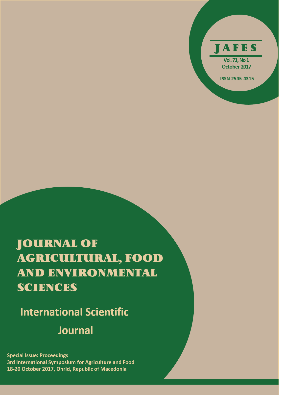 3rd International Symposium for Agriculture and Food 18-20 October 2017, Ohrid, Republic of Macedonia
