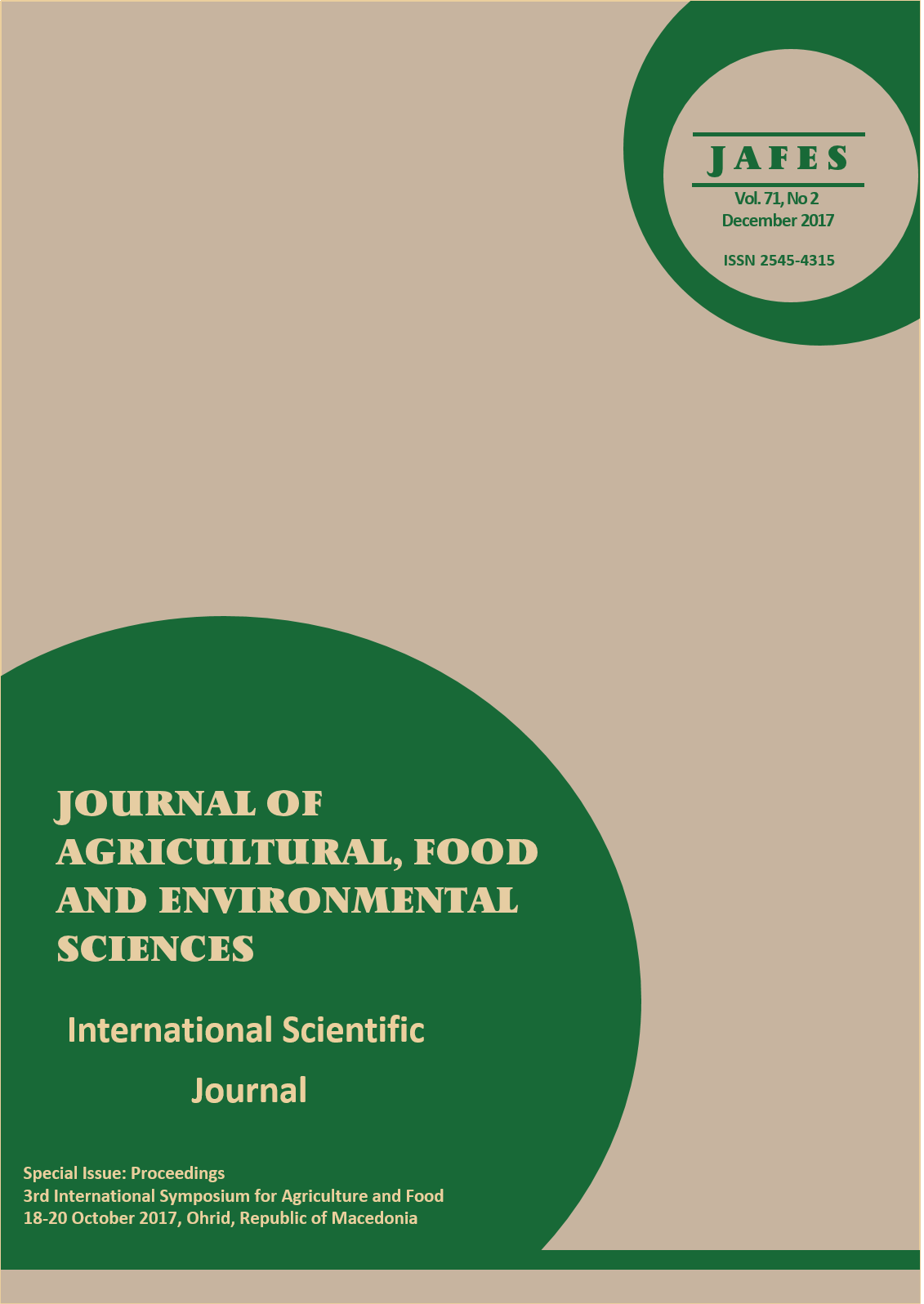 Том. 71 Бр. 2 (2017)Journal of Agricultural, Food and Environmental Sciences, JAFES